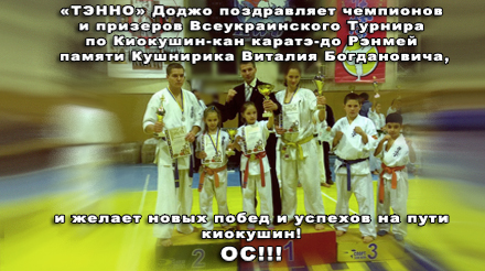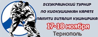 Всеукраинський турнир по Киокушин-кан каратэ-до Рэнмей памяти Кушнирика Виталия Богдановича среди детей ( 8-9 лет ), мужчин , женщин и ветеранов в разделе кумитэ и ката.