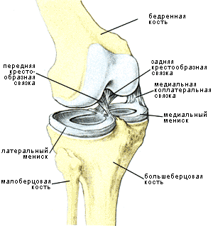 Мениски коленного сустава представляют собой хрящевые прокладки, которые выполняют роль амортизаторов в суставе, а так же стабилизируют коленный сустав и увеличивают конгруентность суставных поверхностей в коленном суставе. При движениях в коленном суставе мениски сжимаются, их форма изменяется.